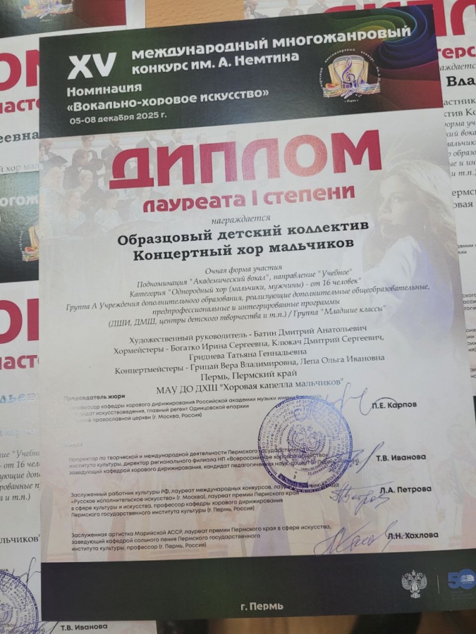 Первые шаги в качестве солиста делает ученик 3 класса Пермской хоровой капеллы мальчиков Саша Шишкин. Он награжден грамотой конкурса «За участие»